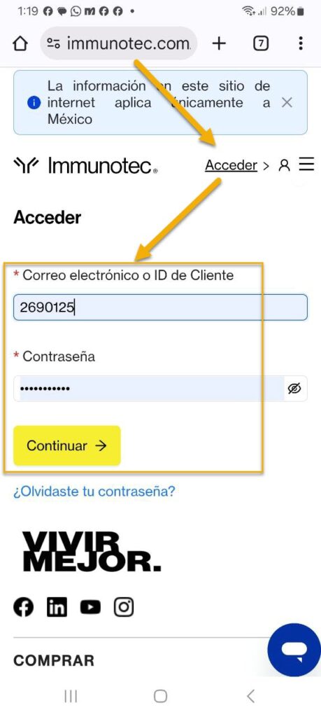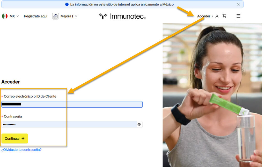 Usa el enlace al sistema de Immunotec e introduce tu ID y contraseña: