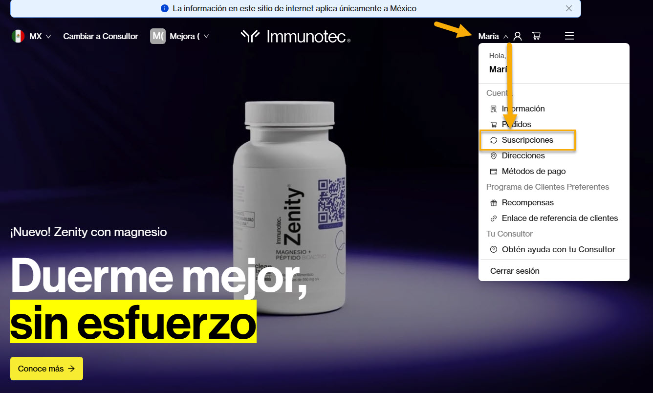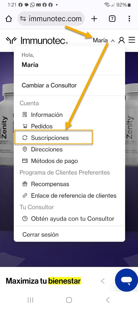 Toca el menú, selecciona el ávatar 👤 y entra a Suscripciones